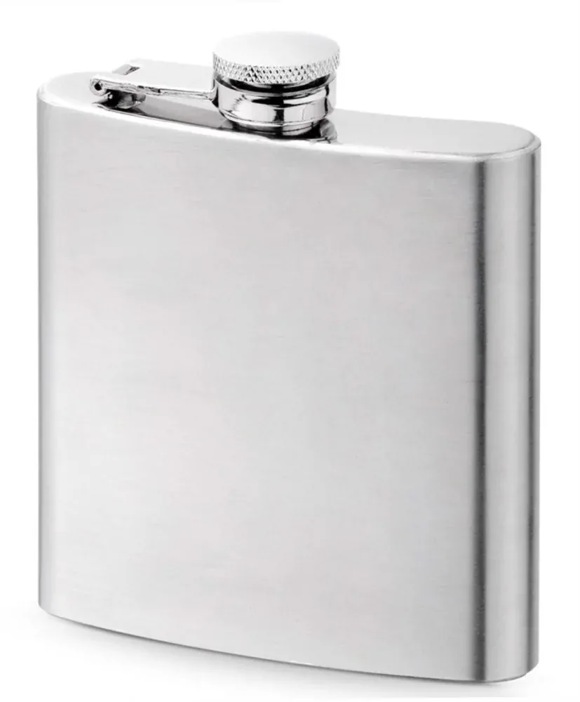 Kapesní láhev (placatka) z nerezové oceli s objemem 180 ml.